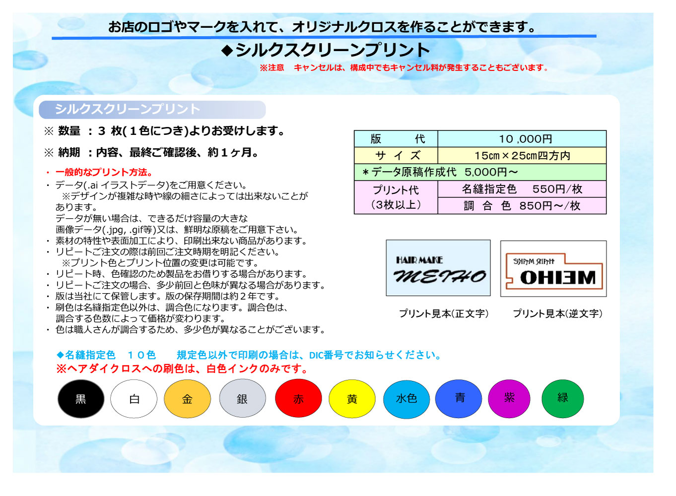 ※外注の専門業者様に印刷を依頼しております。職人さんが色を調合するため、確実に前回と同じ色にならないこともあります。ご了承ください。