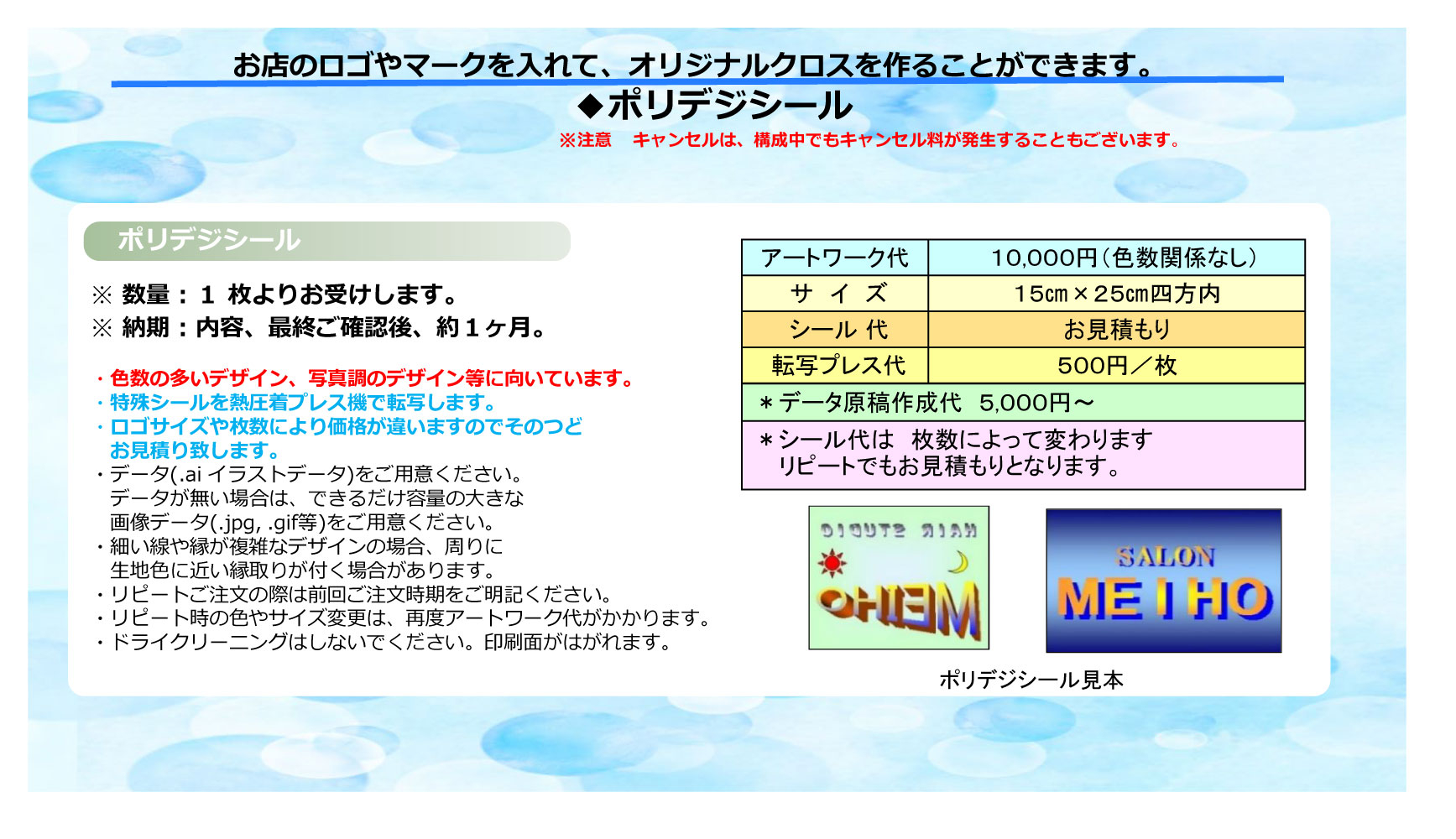 ※多印刷につきましては、ポリデジシールでお願い致します。